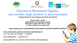 Incontro per genitori della scuola dell’infanzia “Educare al benessere digitale, uso corretto degli schermi in età prescolare” – clicca sulla locandina